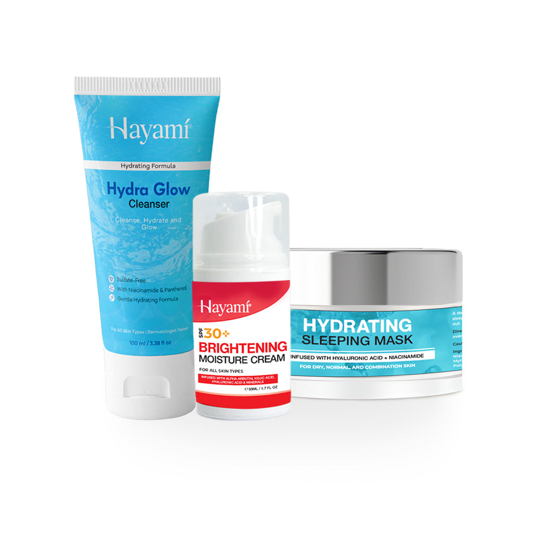 In the morning, cleanse your face using the Hydra Glow Cleanser.