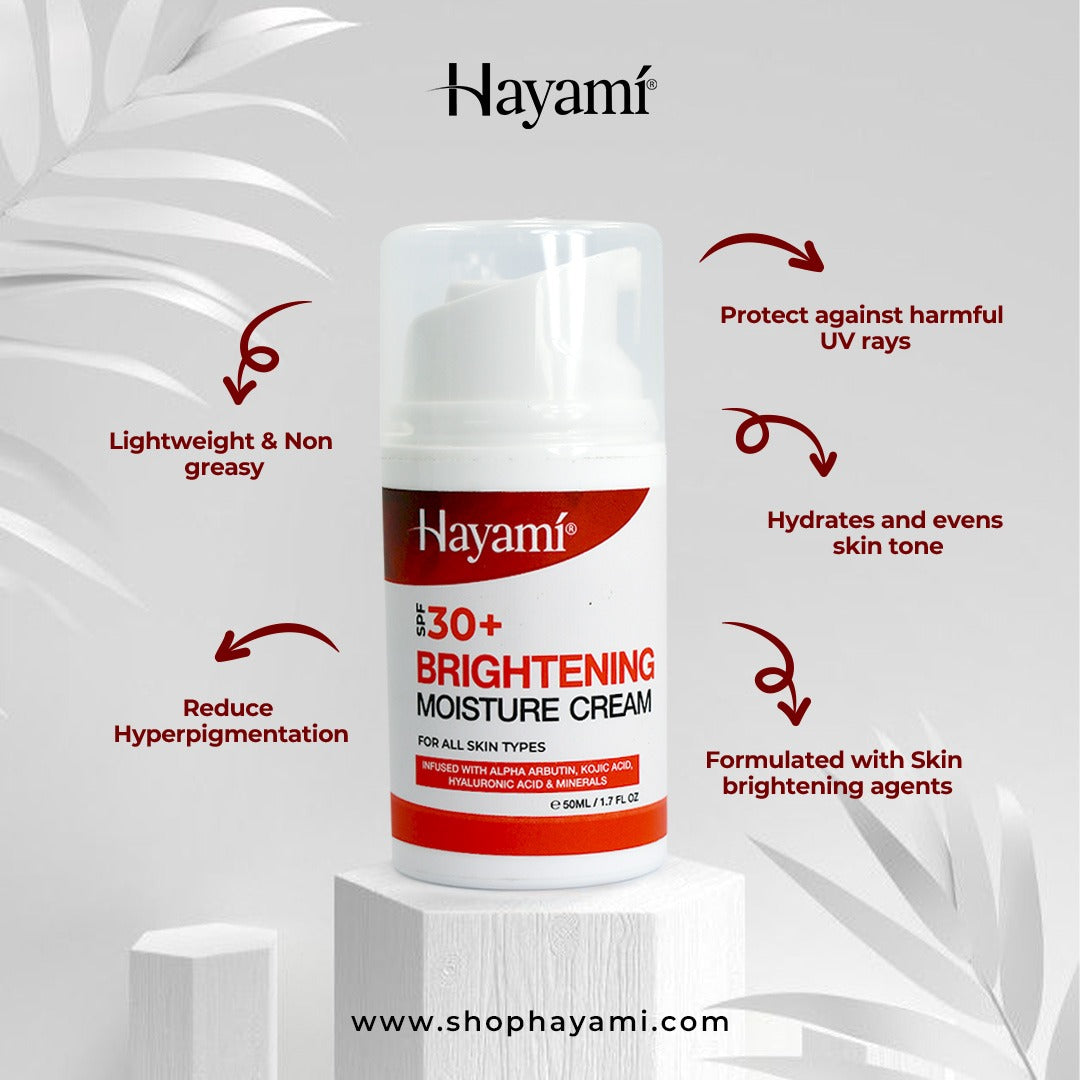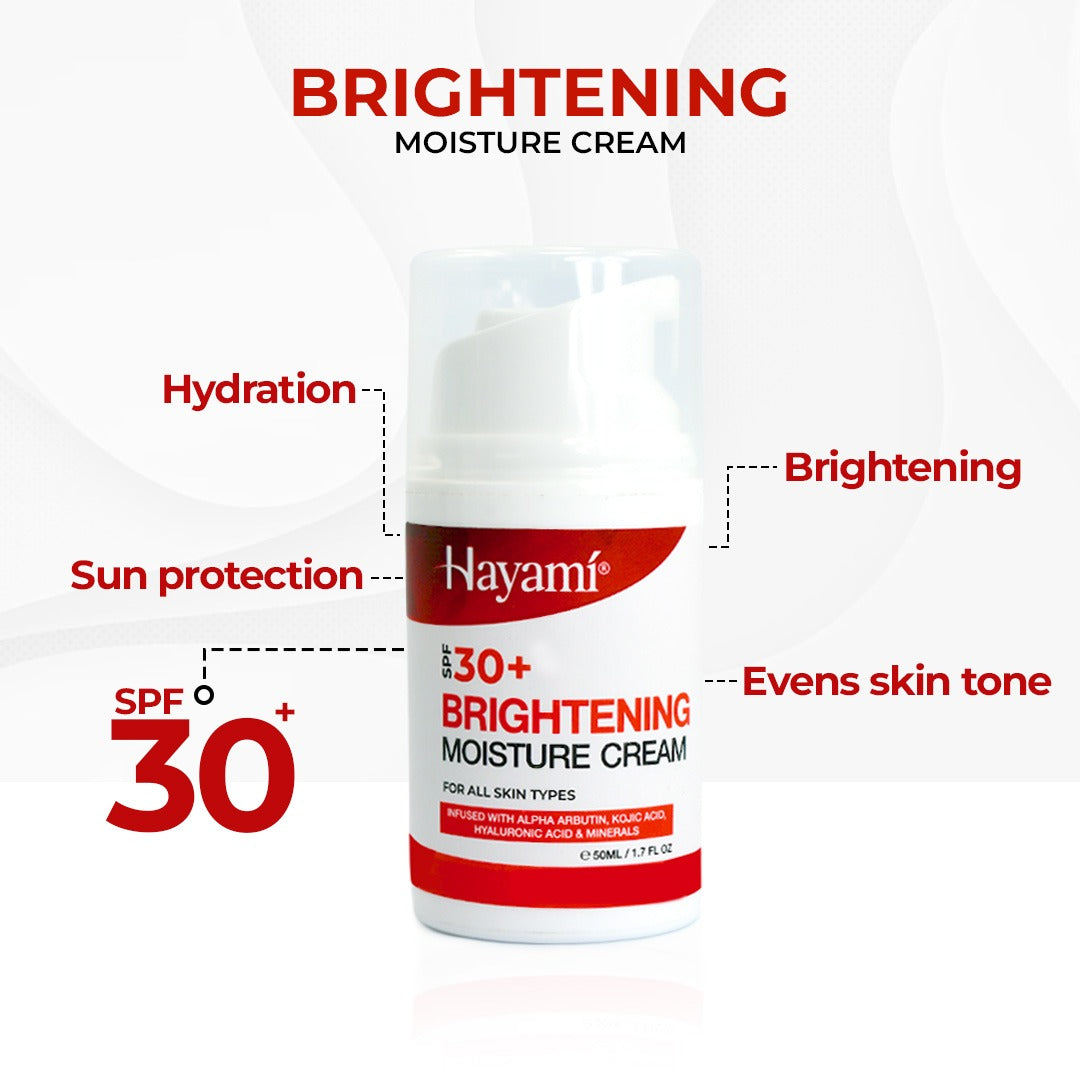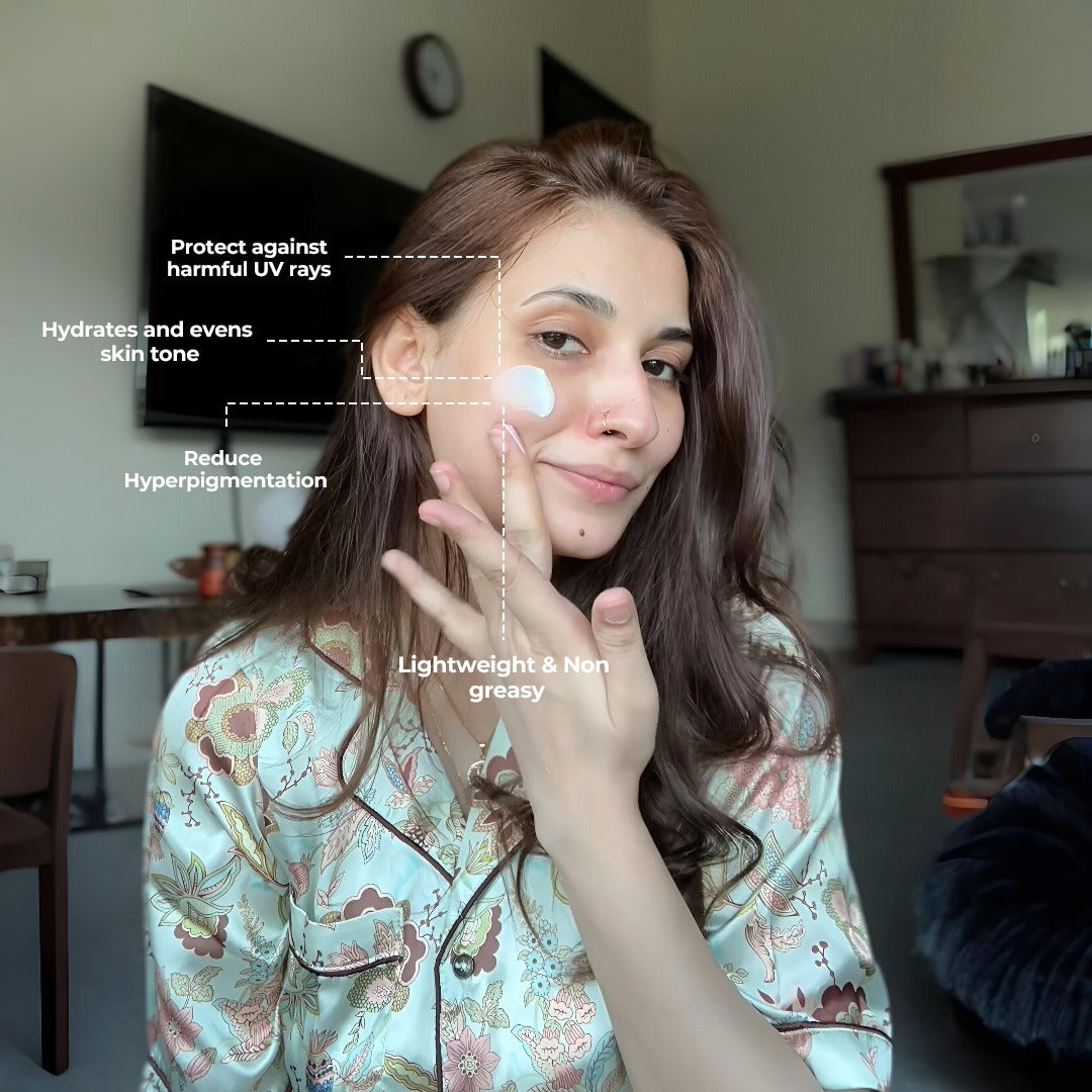 A multifunctional moisturizer with SPF 30+ that protects against harmful UV rays while keeping the skin hydrated & bright. Formulated with skin brightening agents like Alpha Arbutin and Kojic Acid, this cream helps to reduce hyperpigmentation and improve overall skin tone. Lightweight, non-greasy, and suitable for daily use.